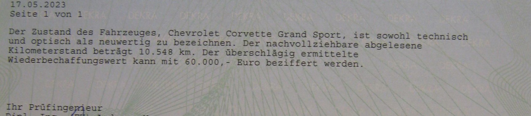 Ich habe letzte Monat neue DEKRA Bewertung gemacht steht 60.000 Euro Wert drin