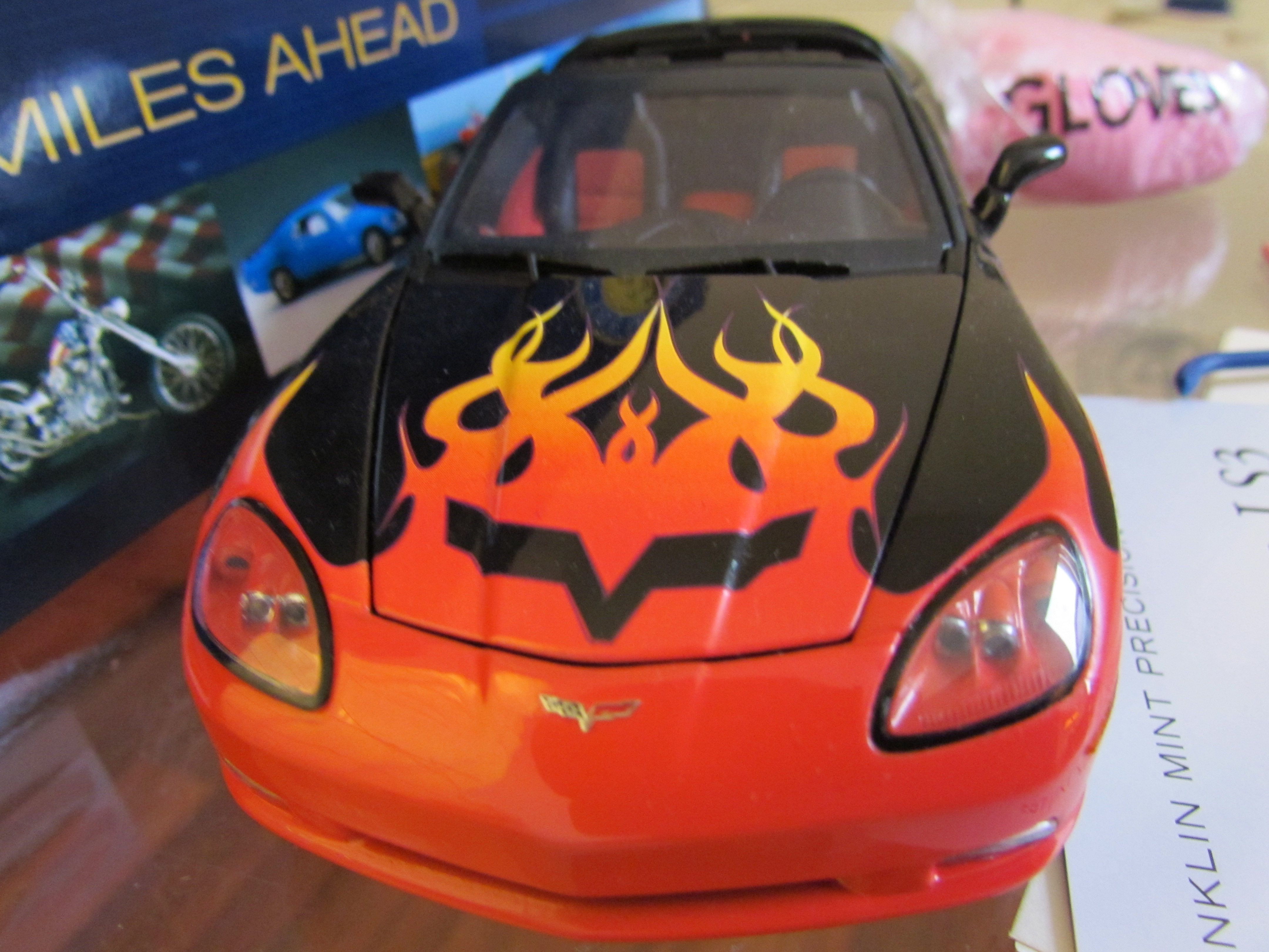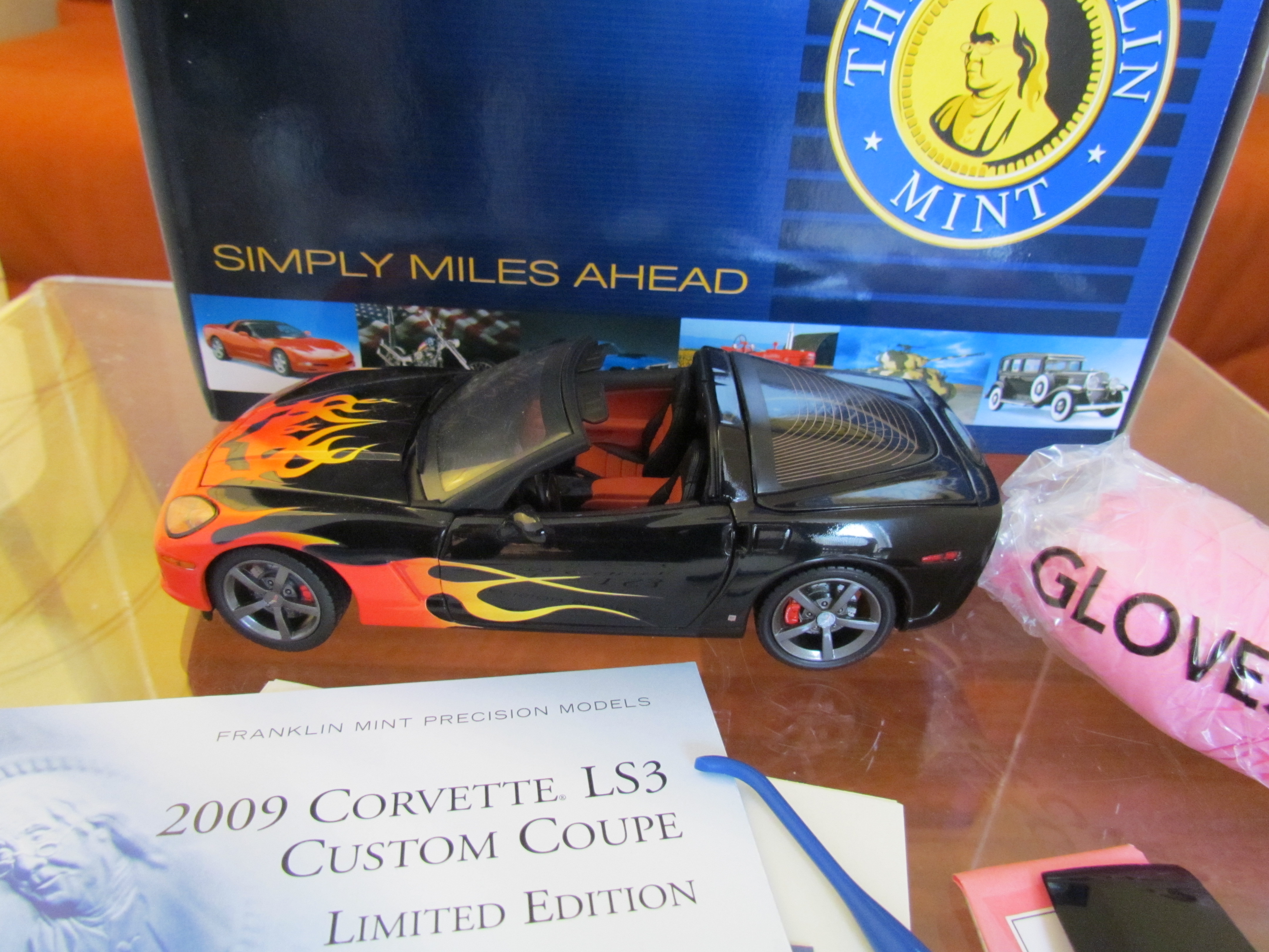 6) 2009er Corvette LS3 Custom Coupe ** black with flames **, Limited Edition von 2009 von Franklin Mint.