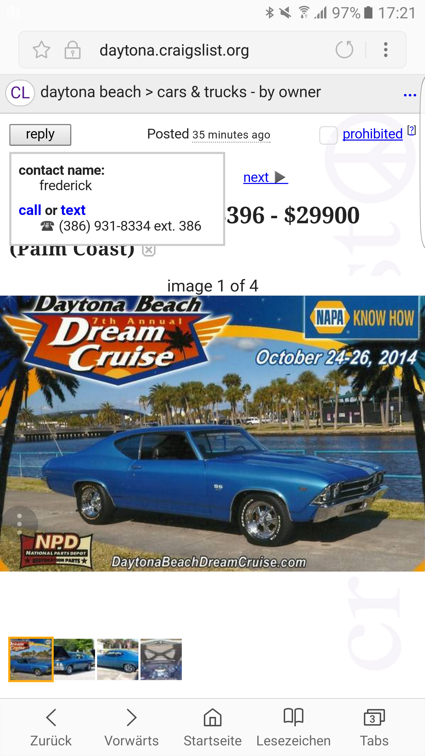 Hab jetzt mal wahllos einige Inserate angeklickt. Über dem Photo des Autos ist ein "reply" Button den Du anklicken und bestätigen musst, dass du kein Roboter ist. Danach geht ein Fenster mit diversen Angaben des Verkäufers auf.