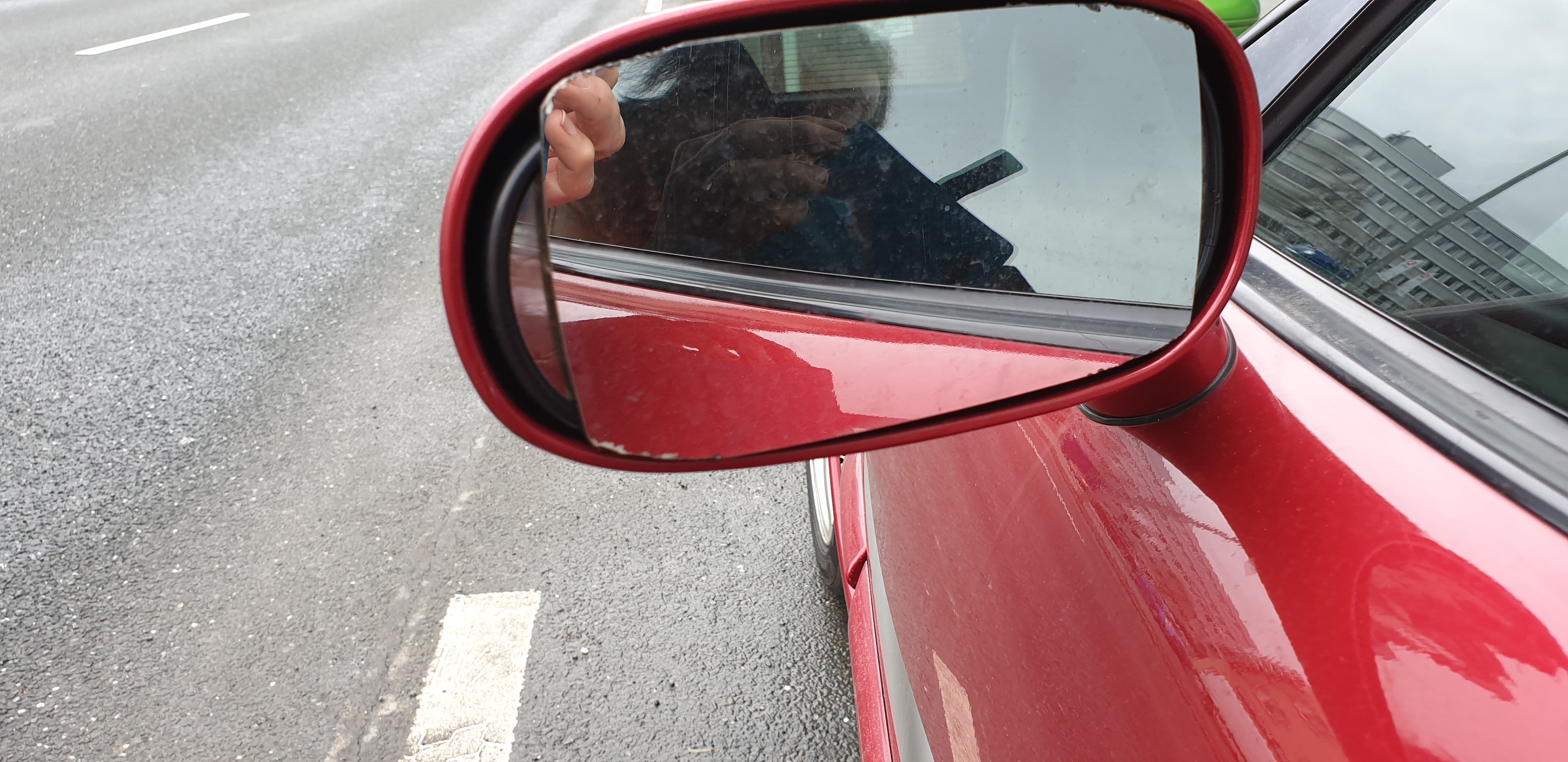 Ich weiß nicht was der Vorbesitzer bei Dir auf den Spiegel geklebt hat, aber ein passendes Glas fällt definitiv nicht auf.