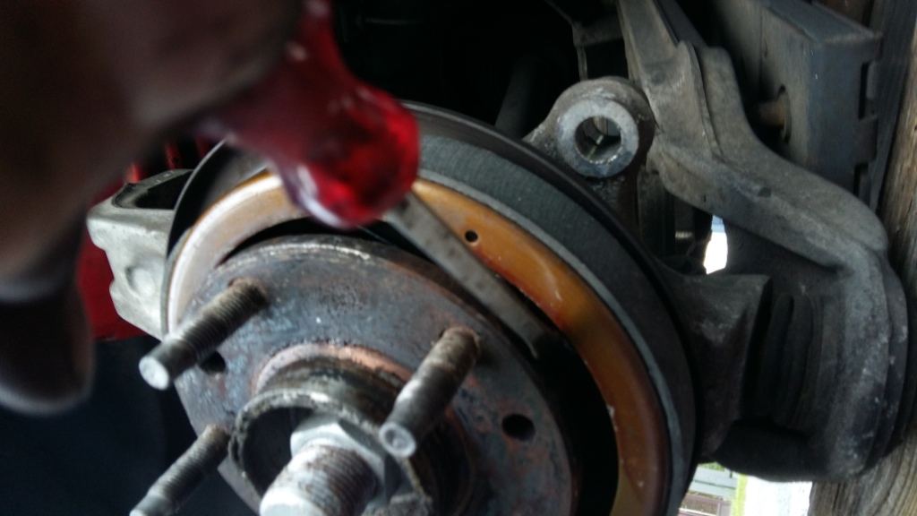 Also versuchte ich , da mann weder von hinten ( Bremsträgerplatte ) noch von vorne ( Bremsscheibe)