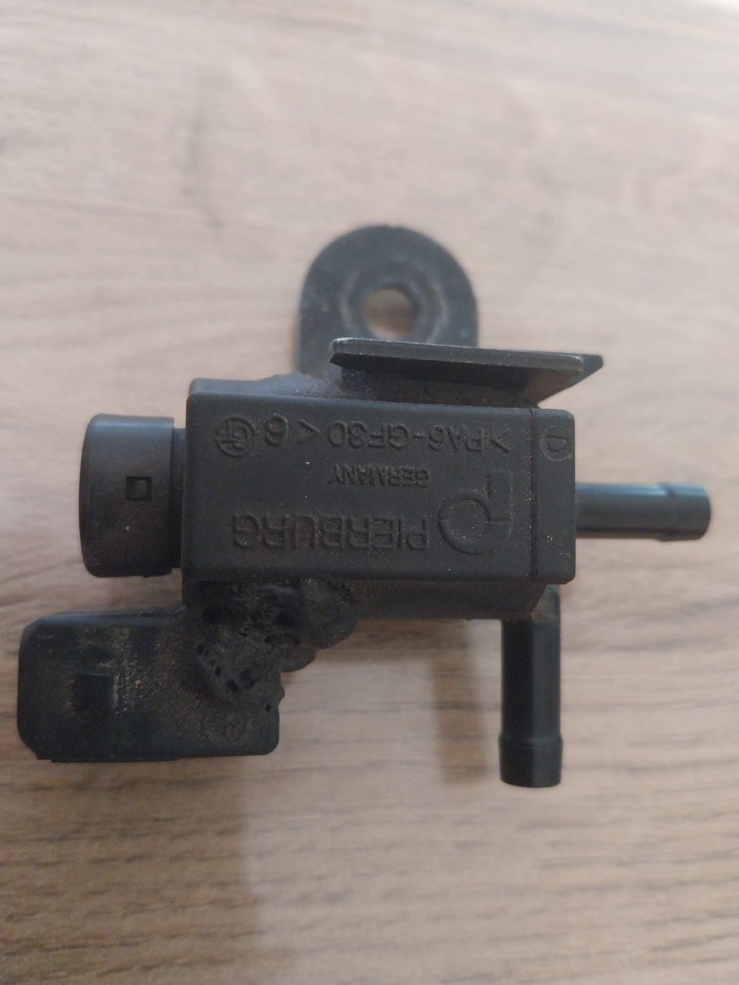 Ich hab das Ventil ausgebaut. Es ist angekokelt, was man am Kunstoff erkennen kann und hat auch einen korrodierten Pol. Auf Carparts online habe ich tatsächlich ein typidentisches gefunden und bestellt. So passt der Clip am Ventil schon mal genau auf die Halterung mit der 6mm Mutter.