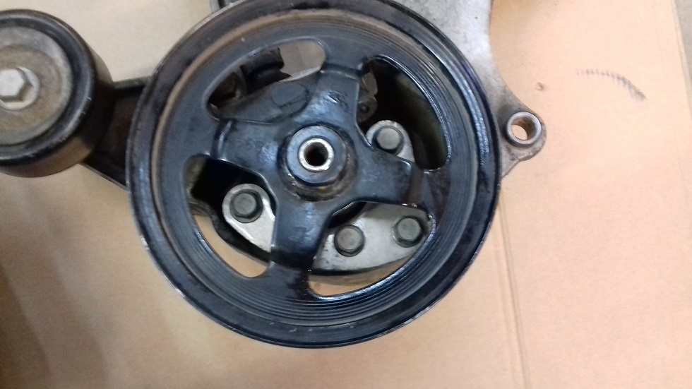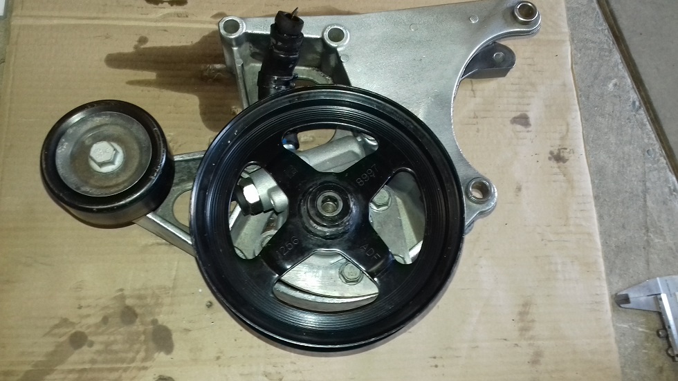 Die C6 Riemenscheibe hat dazu auch Aussparungen, damit man an die Schrauben der Pumpe kommt. Bei der geschlossenen C5 Riemenscheibe muss man den ganzen Träger samt Pumpe herausschrauben.