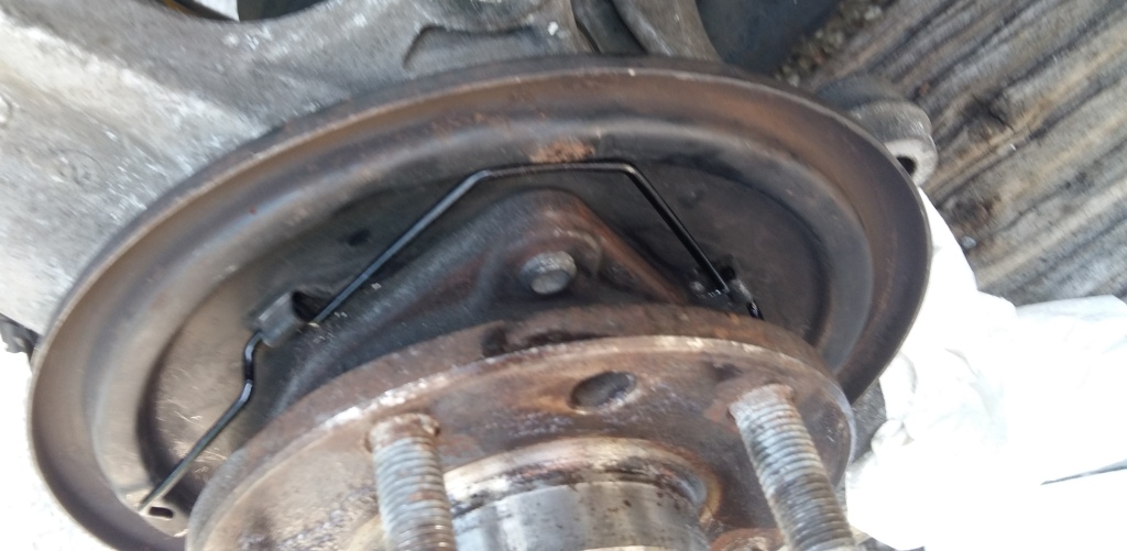 Eigentlich verschleissen die Handbremsbeläge extrem langsam. Der Ersatz ist aber nicht sehr aufwändig, nur etwas "pfriemelig". Man braucht dazu kein Spzialwerkzeug (zum Justieren am Einstellmechanismus (an den Bremszügen wird nichts eingestellt) reicht ein Schraubendreher), ein "Auspufffederhaken" erleichtert aber die Arbeit, um Bremsbacke und Bremsbackenhalter (die Feder) ("brake shoe retainer") beim Einbau wieder korrekt fixiert zu bekommen. Nach Wiedermontage der gesamten Bremsen hinten bei langsamer Rückwartsfahrt mehrfach die Handremse anziehen, die sich dadurch justiert