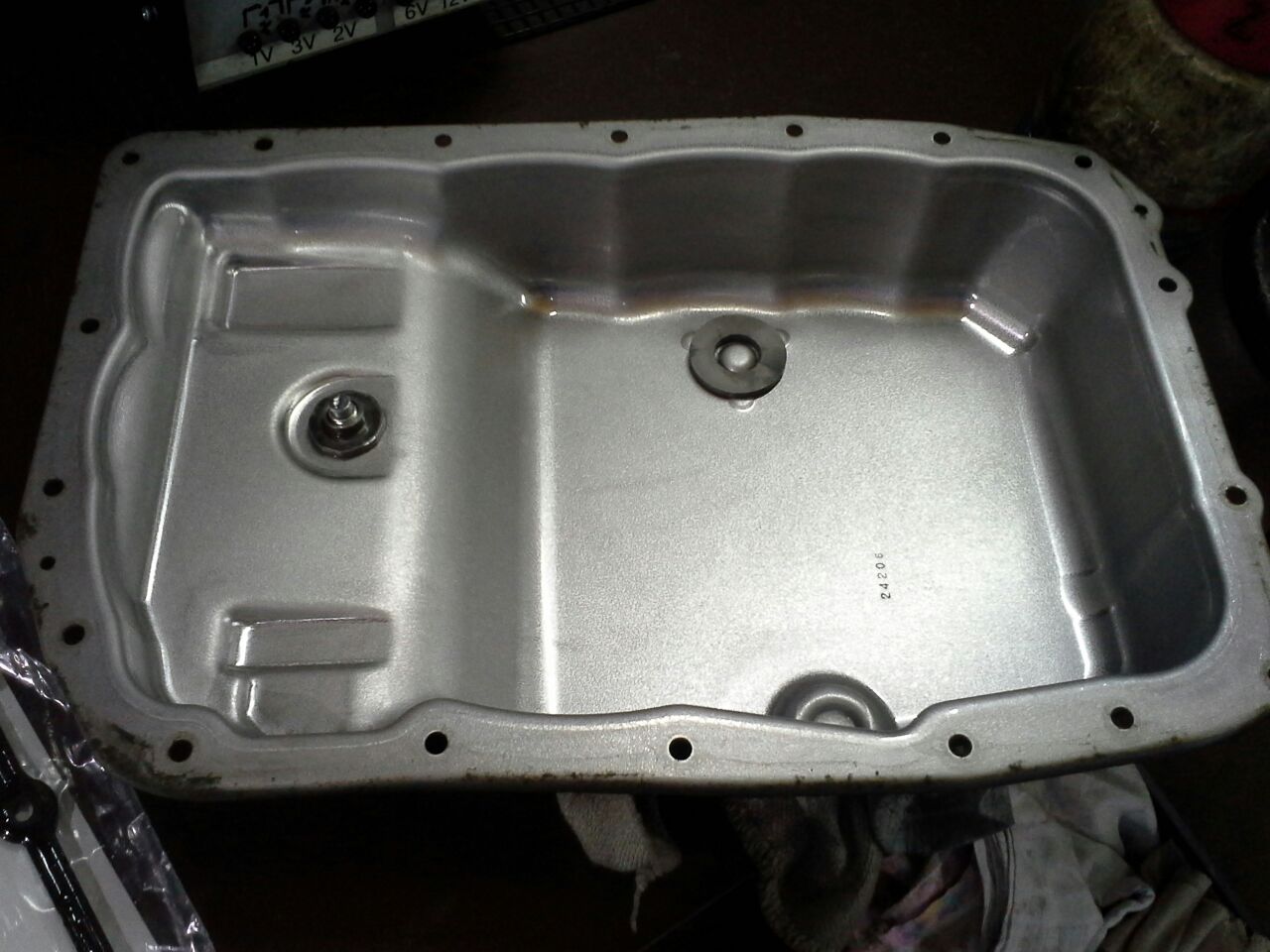 Dann einfüllen bei nih laufendem Motor bis es aus der Schraubenöffnung unten an der Wanne herausläuft.
