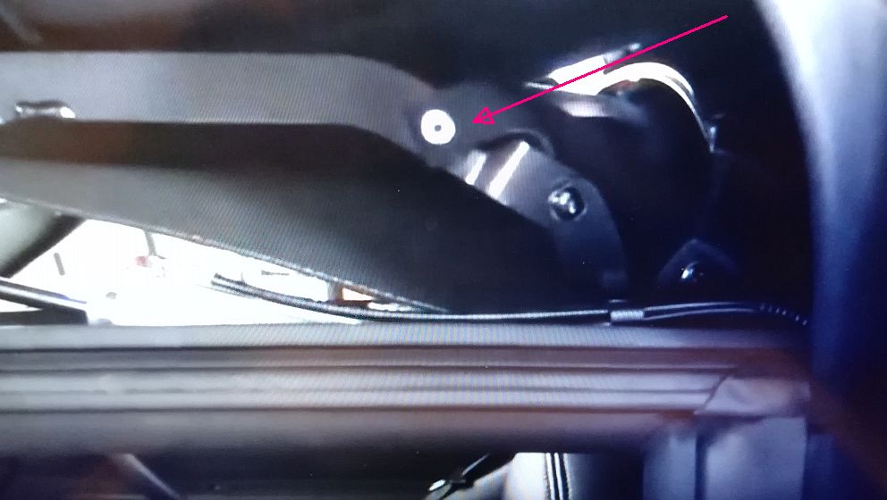 Dann das Band durchschneiden (damit es spannungslos ist) und demontieren. Ich hab zuerst die Niete ausgebohrt, dann hinten losgeschraubt. Die Schrauben sieht man gut, wenn man sich zwischen Rücksitzlehne und Verdeckkasten ins Auto legt (wenn man paßt) und von unten arbeitet. Dann zweites Verdeckband betrachten, wie das erste geführt werden muß und in umgekehrter Reihenfolge montieren.