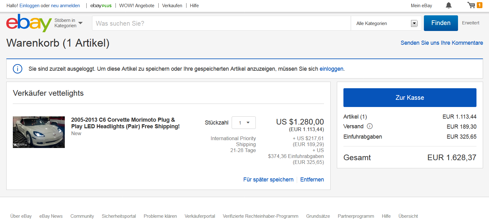 Wenn Zoll und Einfuhr in Amiland bezahlt werden ,werden die LED Scheinwerfer ohne den Zoll passieren zu müssen ,