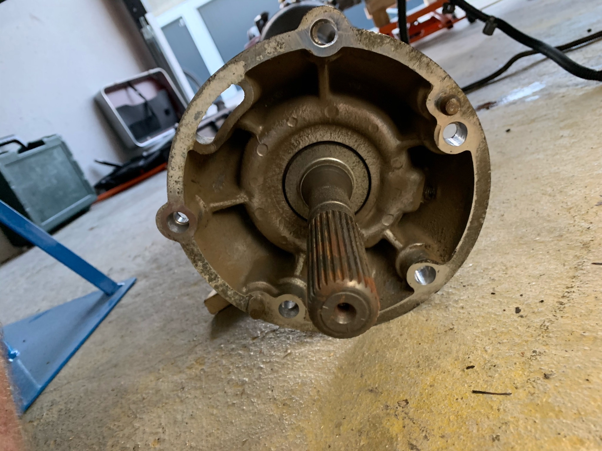 Hab mich doch dazu entschlossen Achse mit Diff und Getriebe als Einheit ohne die TT raus zu nehmen.