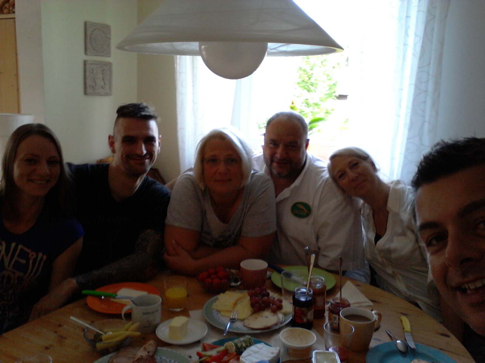 Du kennst Thomas, Rainer? [smilie=blind.gif] Das ist diese kleine Elfe in der Mitte, die fast von Dani und Andrea verdeckt wird. Und es ist nur ungefähr ein Zehntel des Frühstückbüffets zu sehen womit uns die beiden verköstigt haben. Da können wir den Thomas (und Dani natürlich) nicht mit einem popeligen Hasenbrot abspeisen. [smilie=nono.gif]